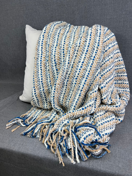 Luxury Knit Throw - 40" x 70" - Stria Teal; Bulky knit throw in a lovely blue, teal, rust, multi color tone with a fringe