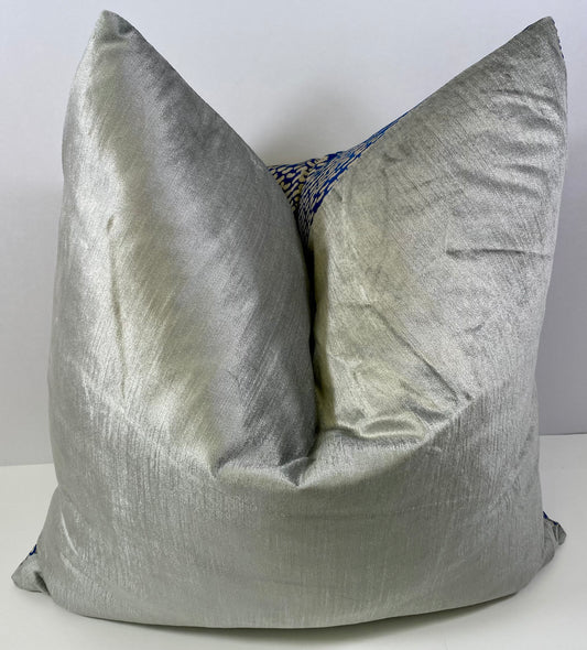 Luxury Pillow - 24" x 24" - Pebble Beach; silver geometric shapes on a blue base