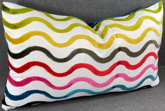 Luxury Lumbar Pillow - 24" x 14" - Dandy; A rainbow of embroidery with slubs