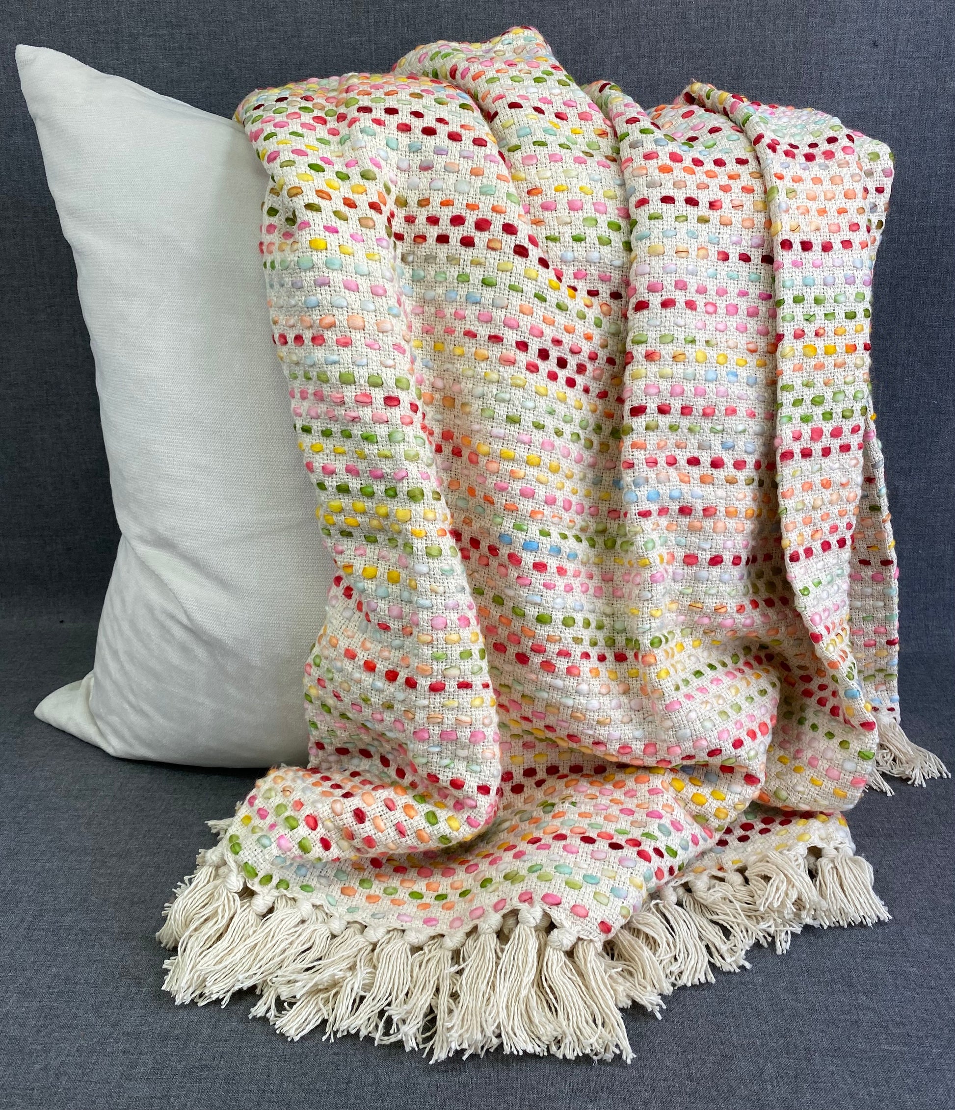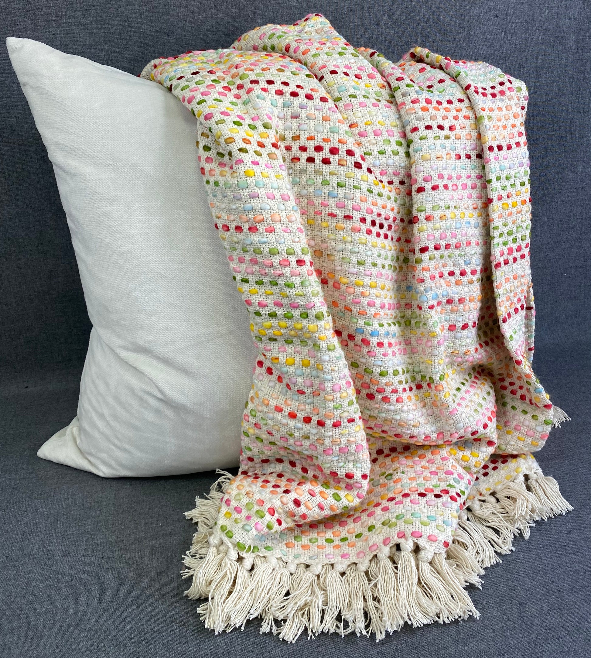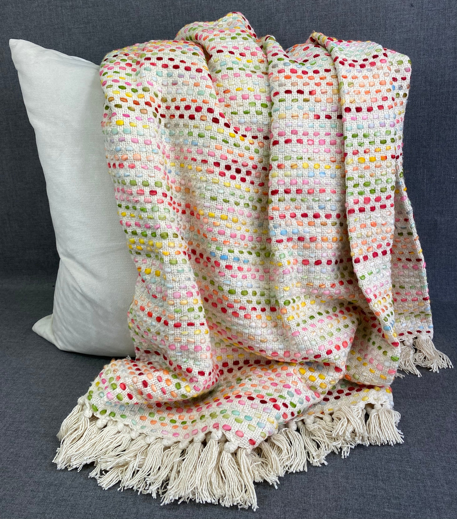 Beautiful, warm and cozy. This luxury throw is lovely and multi colored. Makes a perfect snuggle blanket for those rainy winter days or to snuggle up next to the fire.