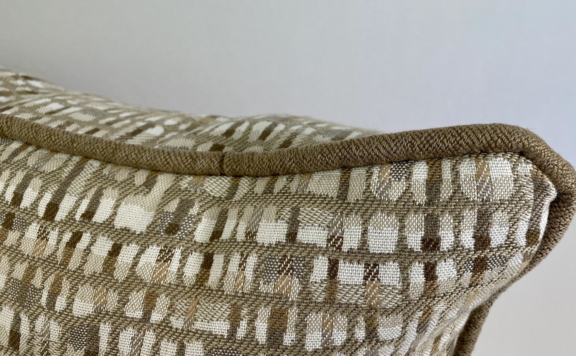 This range is a mix and match collection with a pattern and a solid, both of which are contrast piped with the fabric from the other pillow. This creates a top end bespoke look and being our design you won't find this pillow anywhere else. This pillow is 22" x 12" when measured flat with no filling. With filling it is about 5” deep. It contains fiber filling and is made in America. These are limited production runs until the fabric is gone.