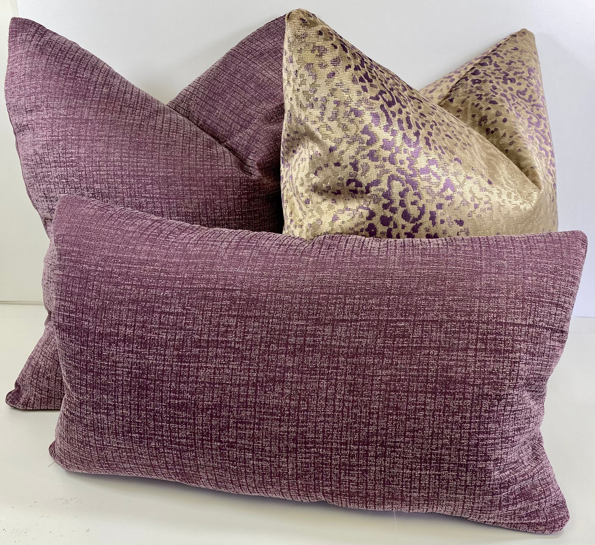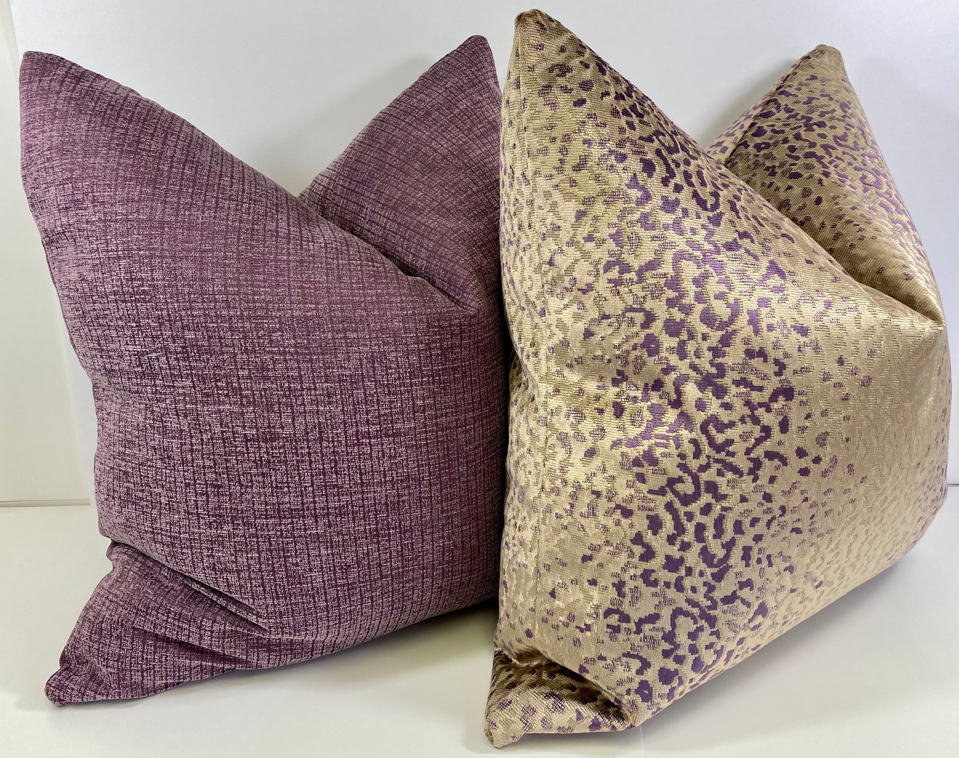 So soft to touch. If you're a fan a mauve or purple this could be must have. This pillow is 24" x 24" when measured flat with no filling. With filling it is 6" deep. It contains feather and down filling and is made in America.Solid Mauve textured pillow