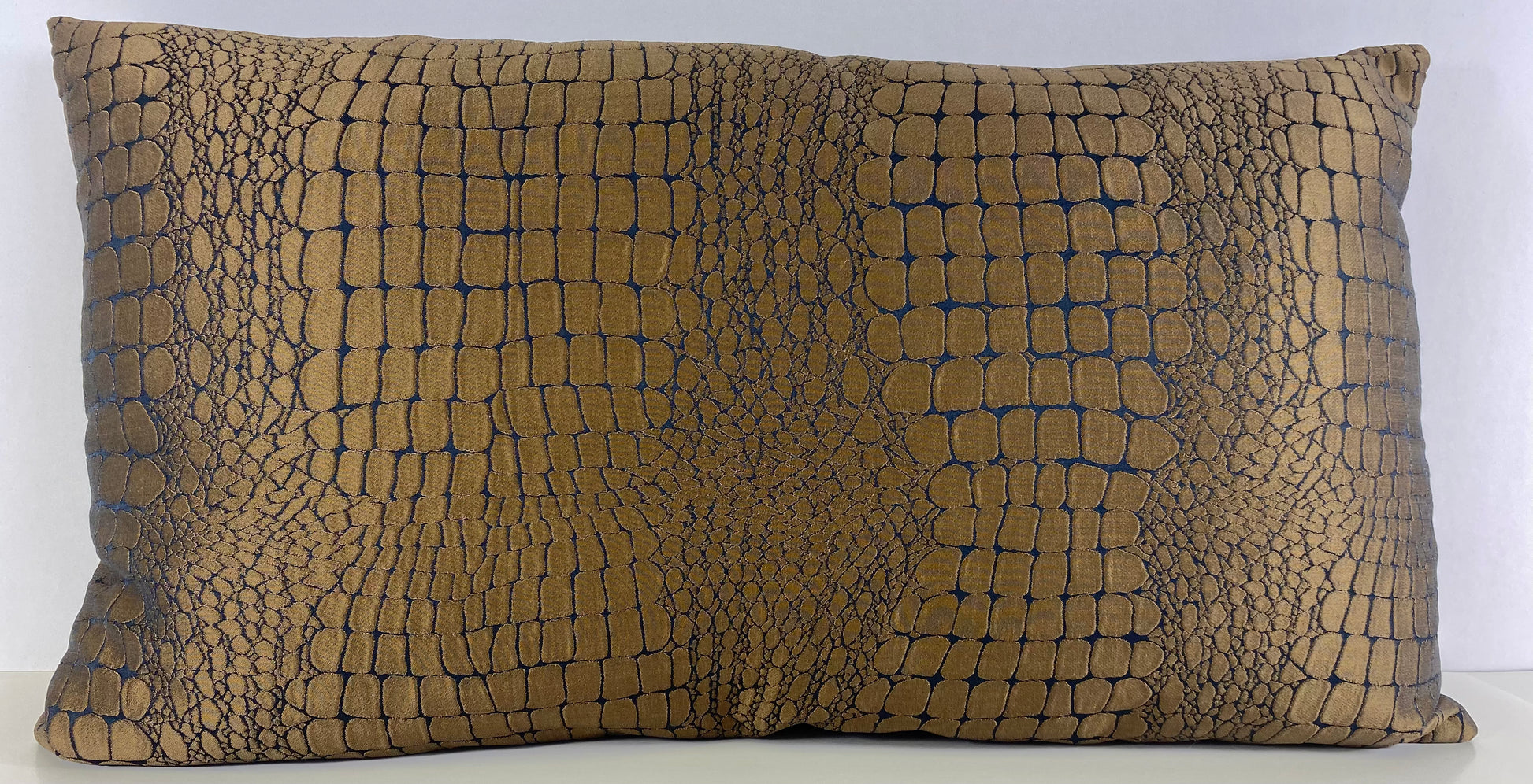 Luxury Lumbar Pillow - 24” x 14” - Tillie Bronze; Moss brown/bronze satin fabric with a alligator skin texture pattern