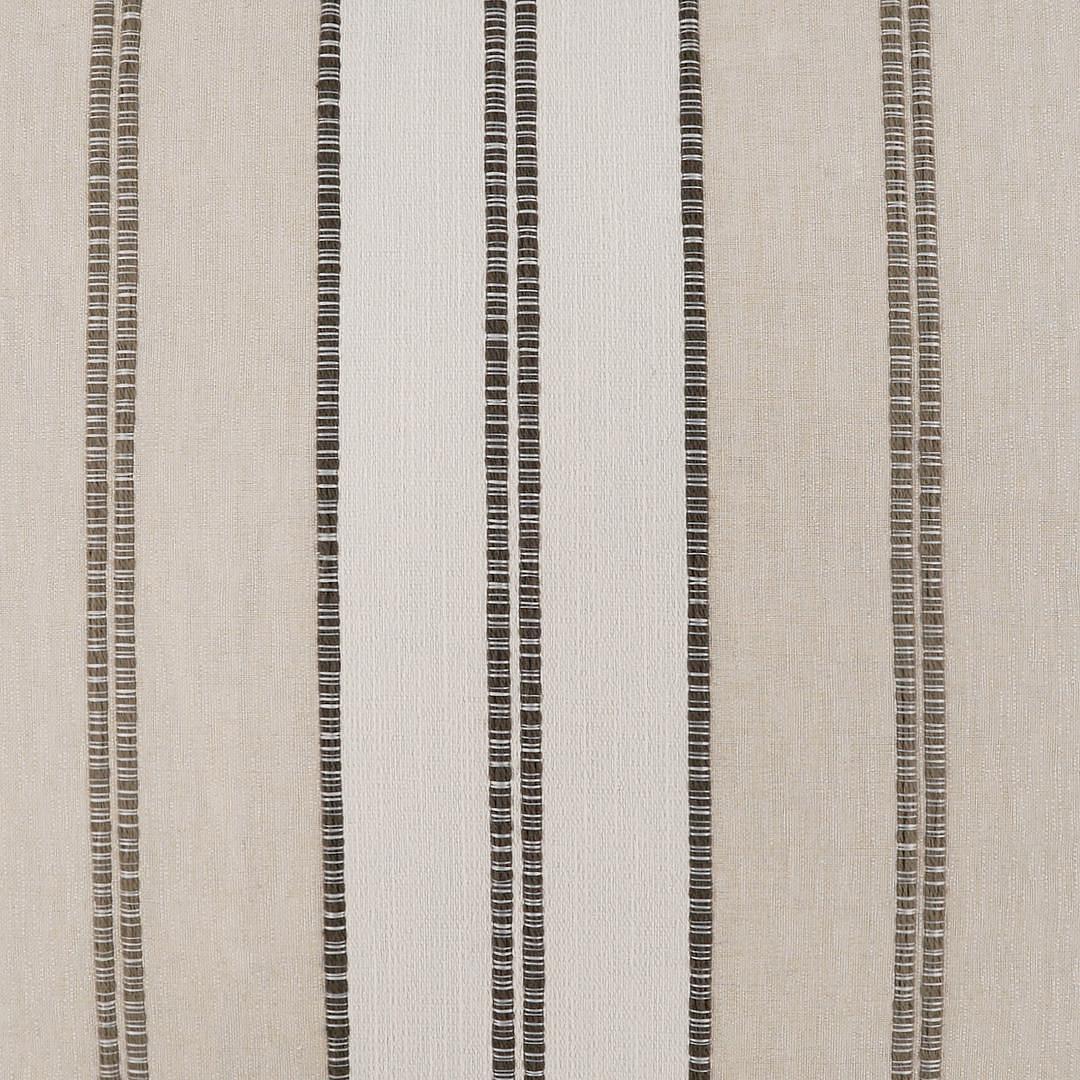 This pillow is 24" x 14" when measured flat with no filling. With filling it is 6" deep. It contains feather and down filling and is made in America. A multi textural linen fabric in shades of tan and embroidered with brown stripes. Same on both sides