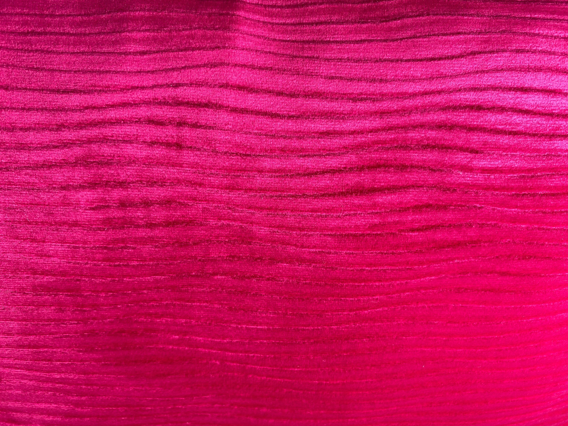 This pillow is 24" x 14" when measured flat with no filling. With filling it is 6" deep. It contains feather and down filling and is made in America. Bright Fuchsia solid with a wavy pattern in the soft fabric.