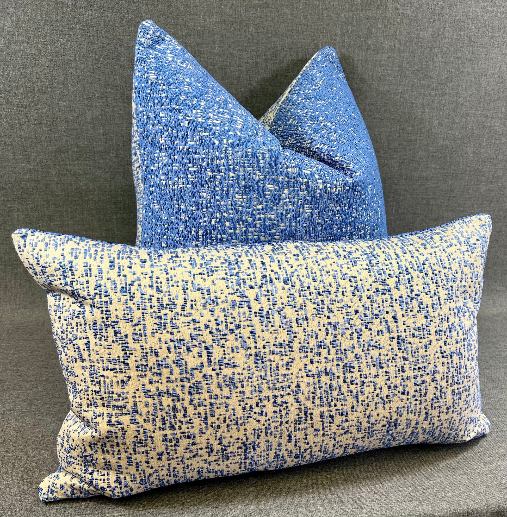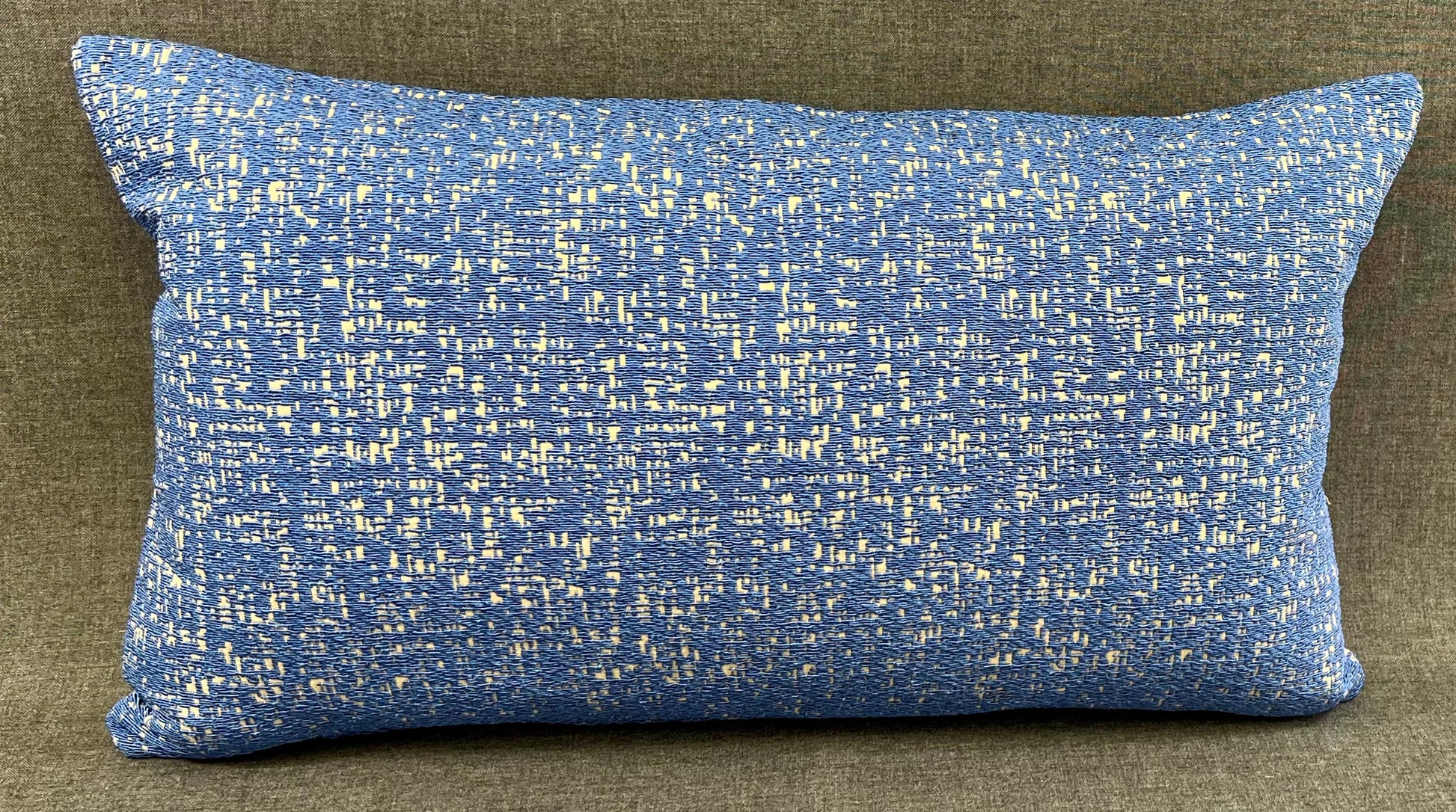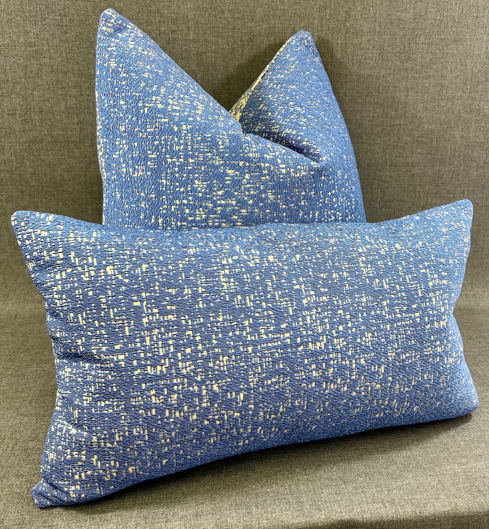 Luxury Pillow - 24" x 14" - Summer Sky Lumbar-Blue; Bright blue textured fabric over a cream background with the back a cream texture over a blue background