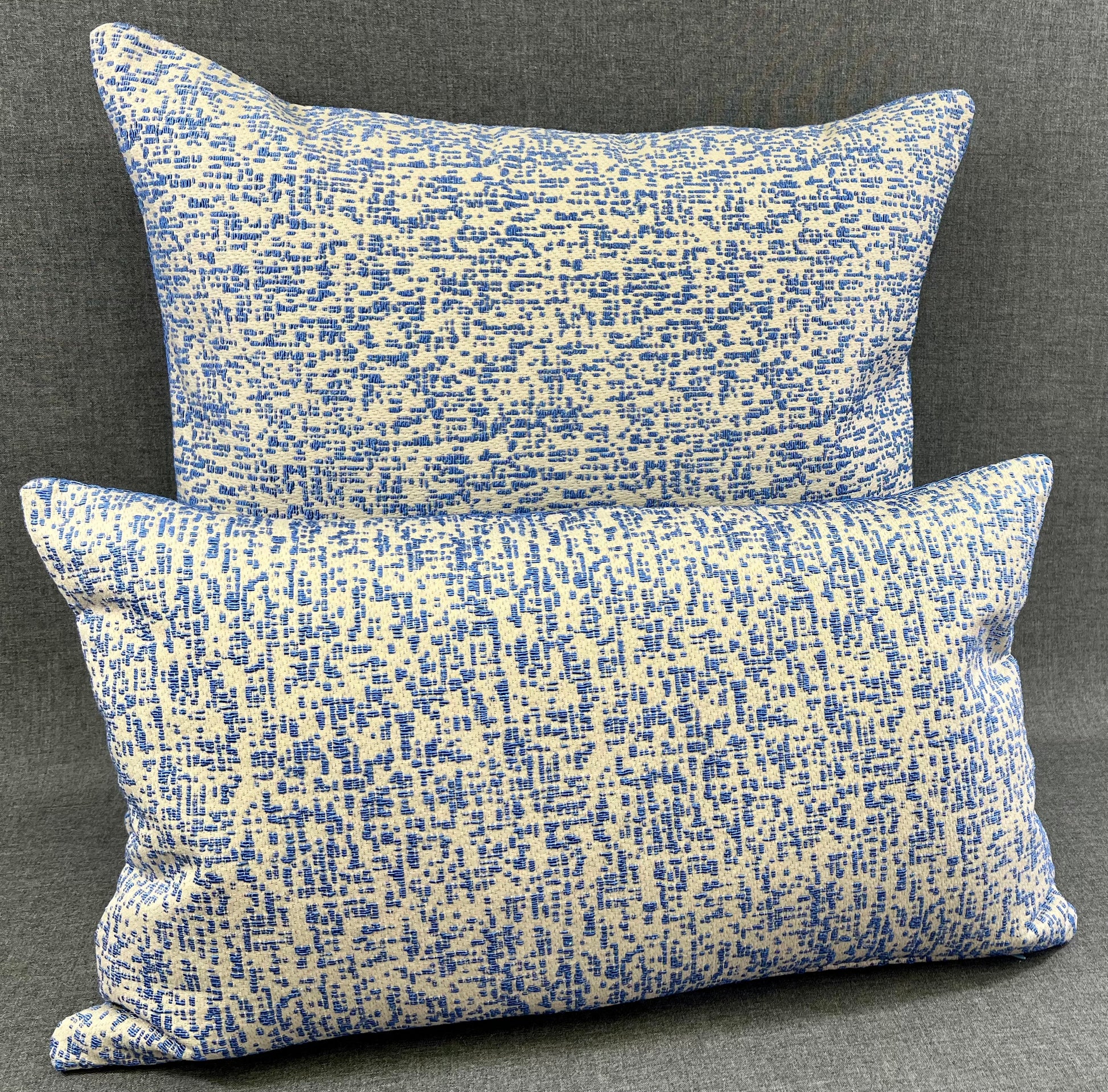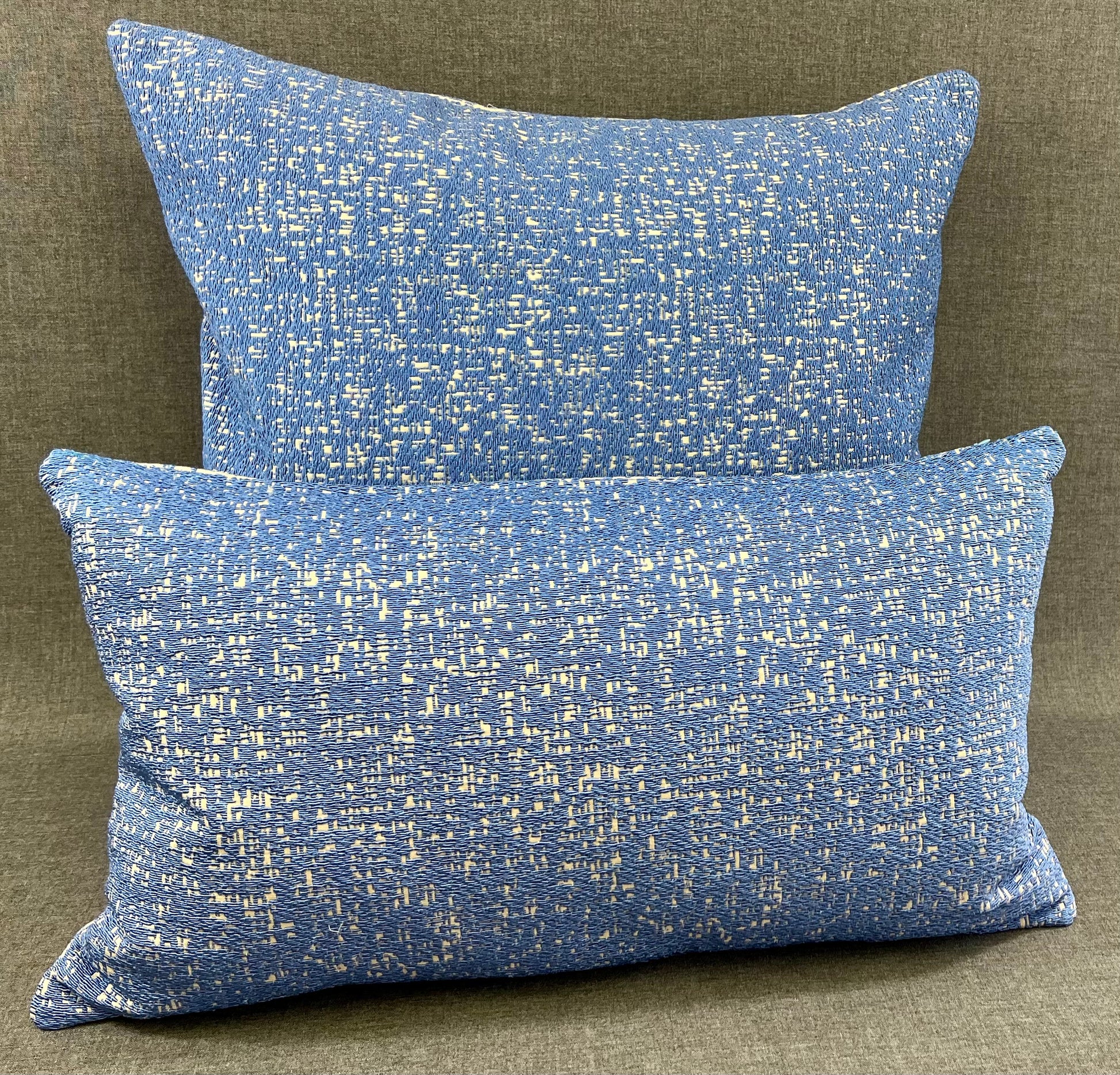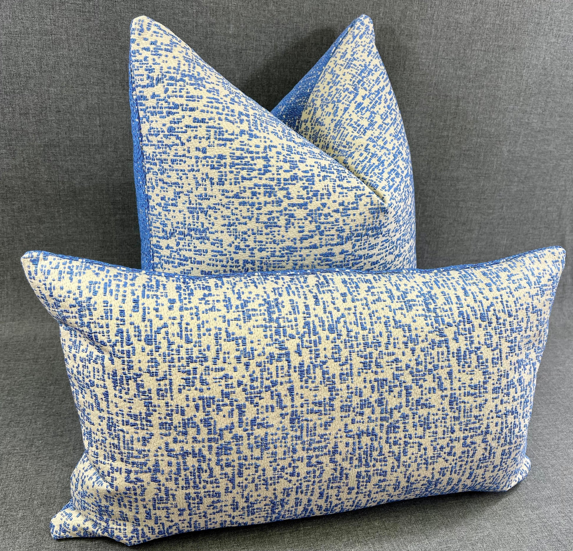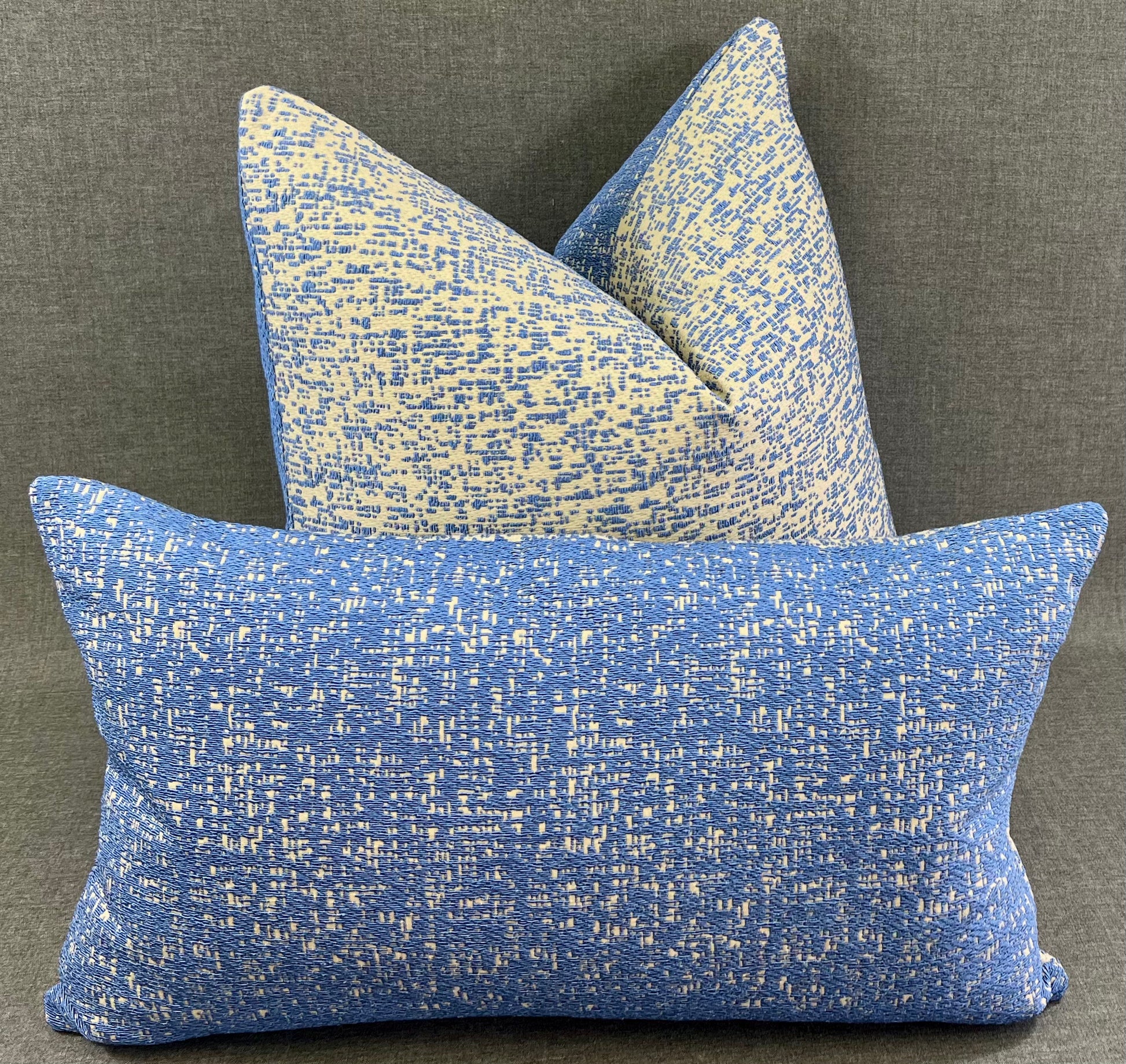 Luxury Pillow - 24" x 14" - Summer Sky Lumbar-Blue; Bright blue textured fabric over a cream background with the back a cream texture over a blue background