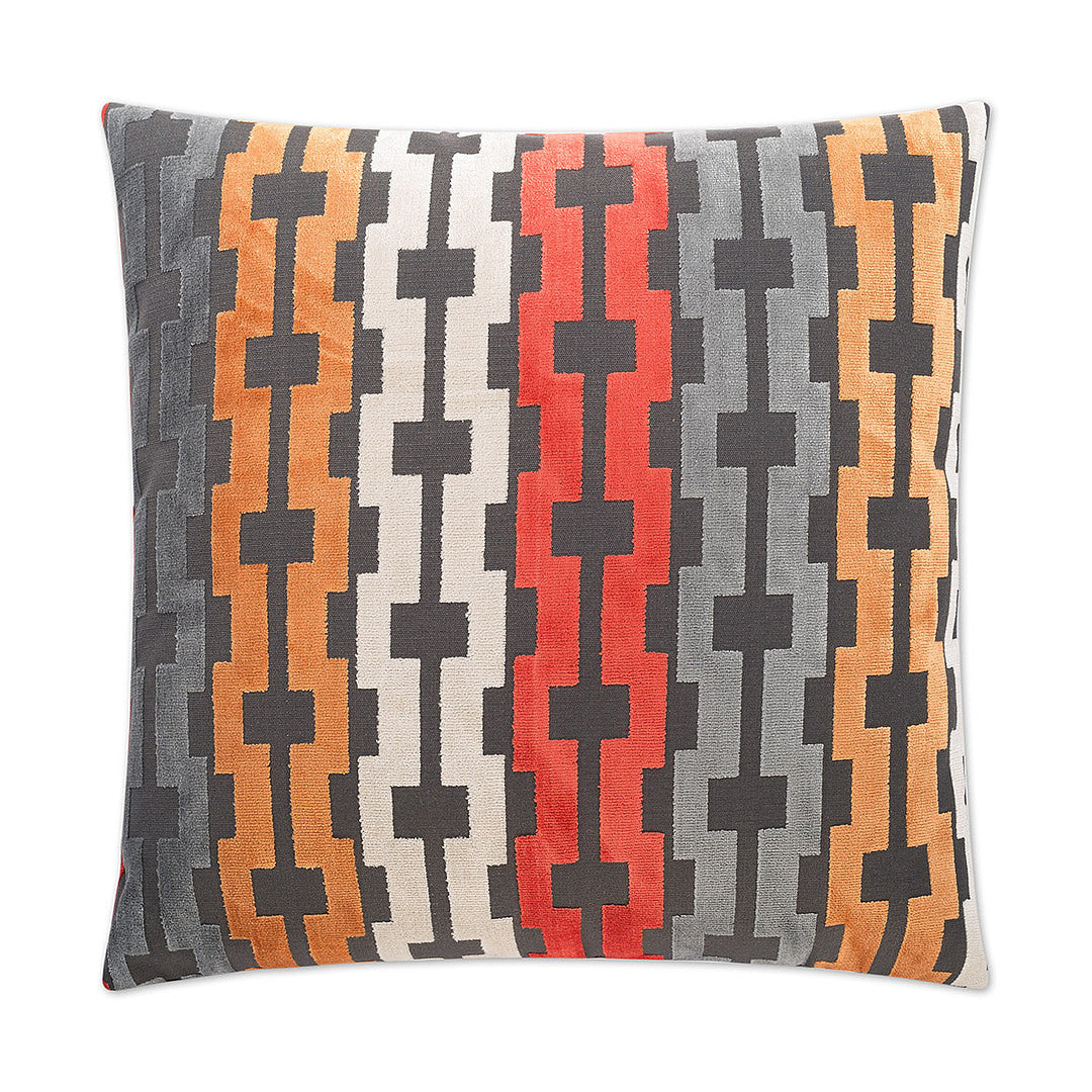 Luxury Pillow - 24" x 24" - Bardot-Atomic; Geometric weave of red orange, grey, tangerine and silver on a dark grey base
