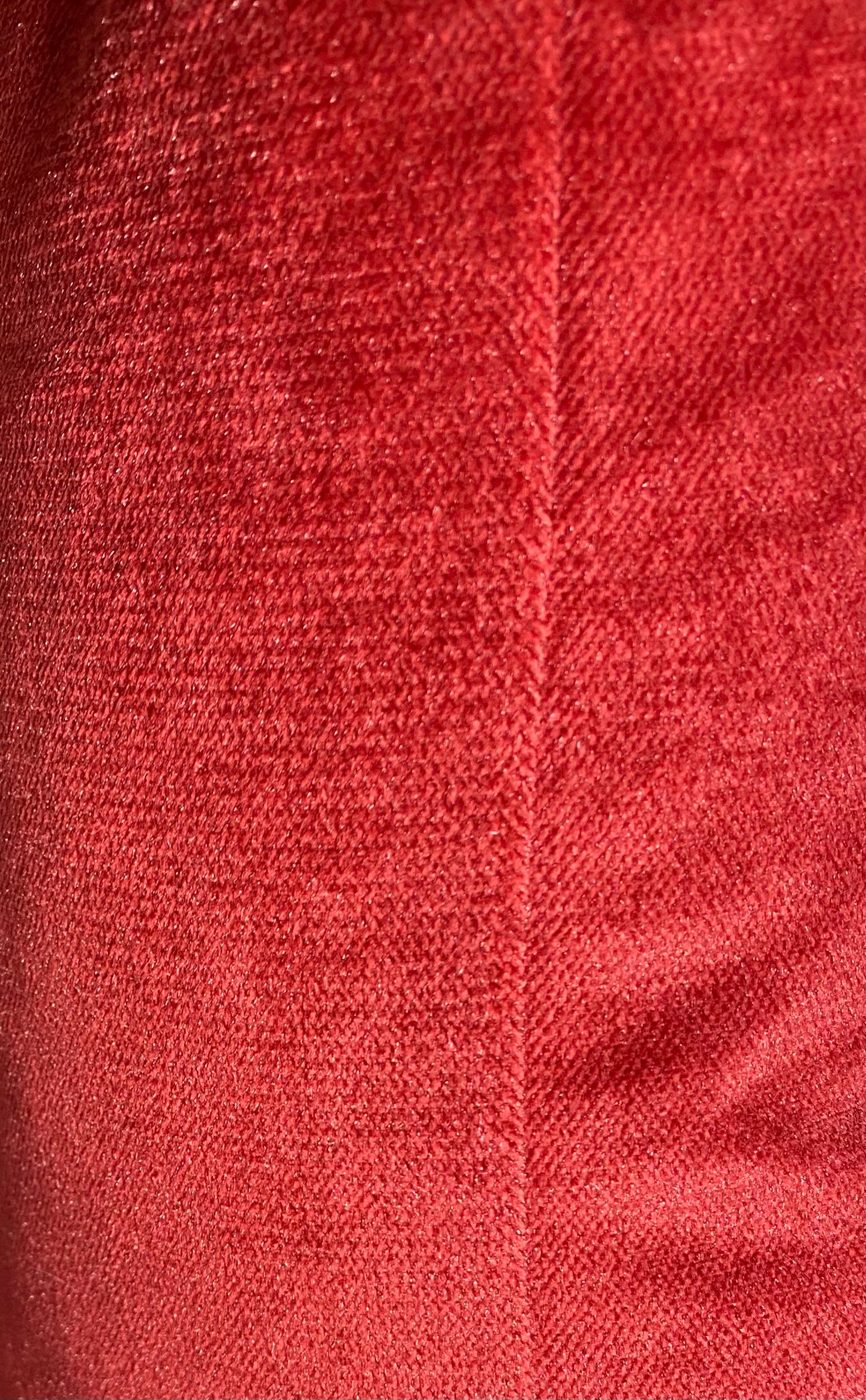 This pillow is 24" x 24" when measured flat with no filling. With filling it is 6" deep. It contains feather and down filling and is made in America. Sangria red solid color in a creamy smooth velvet fabric.