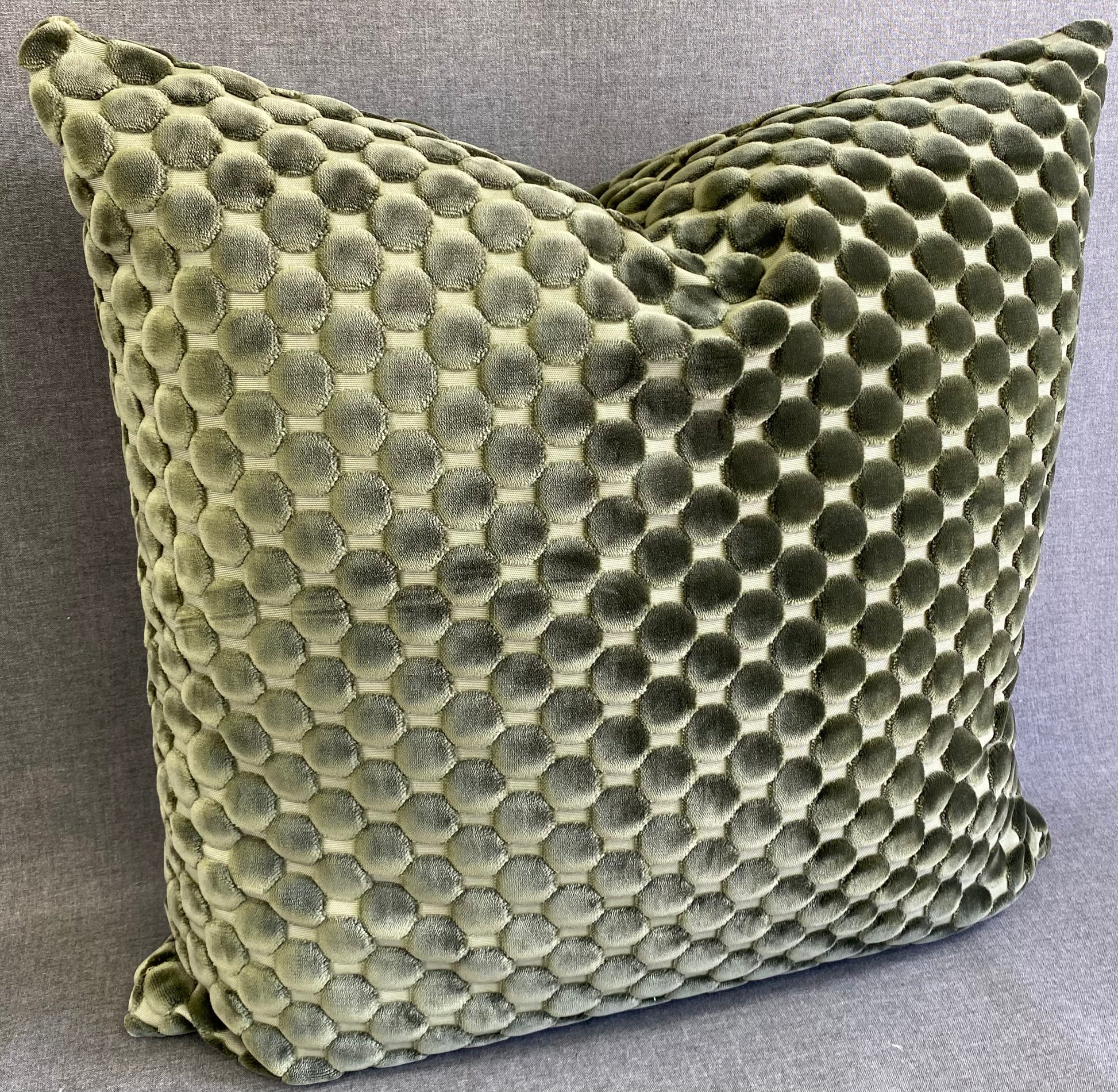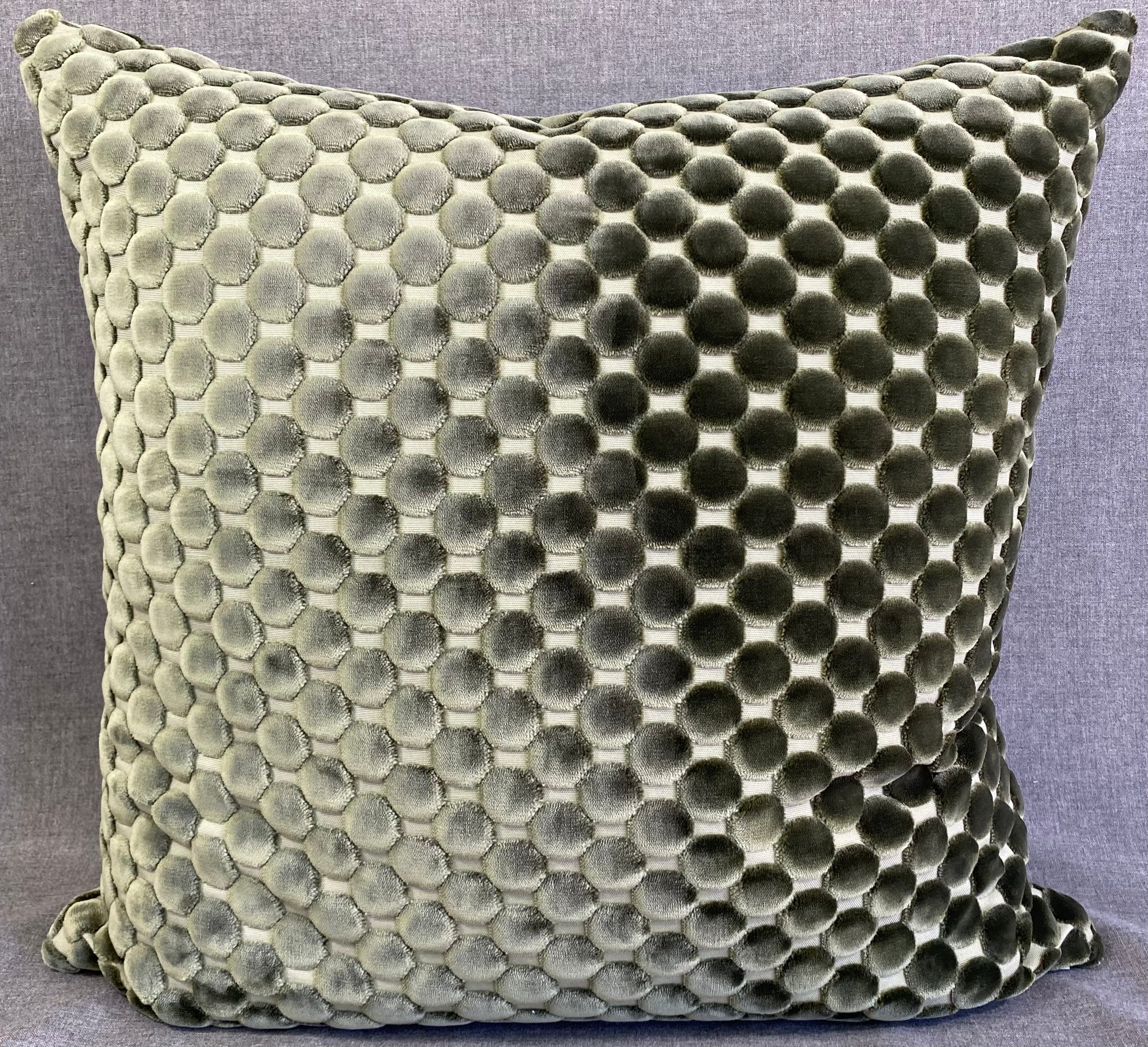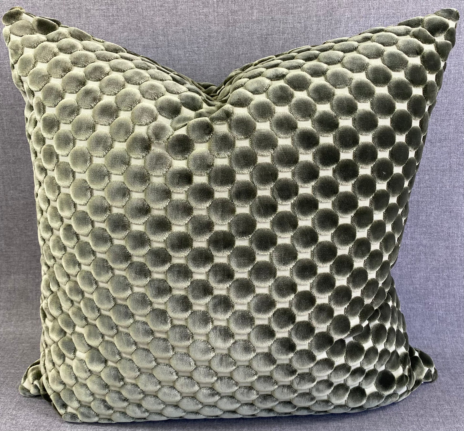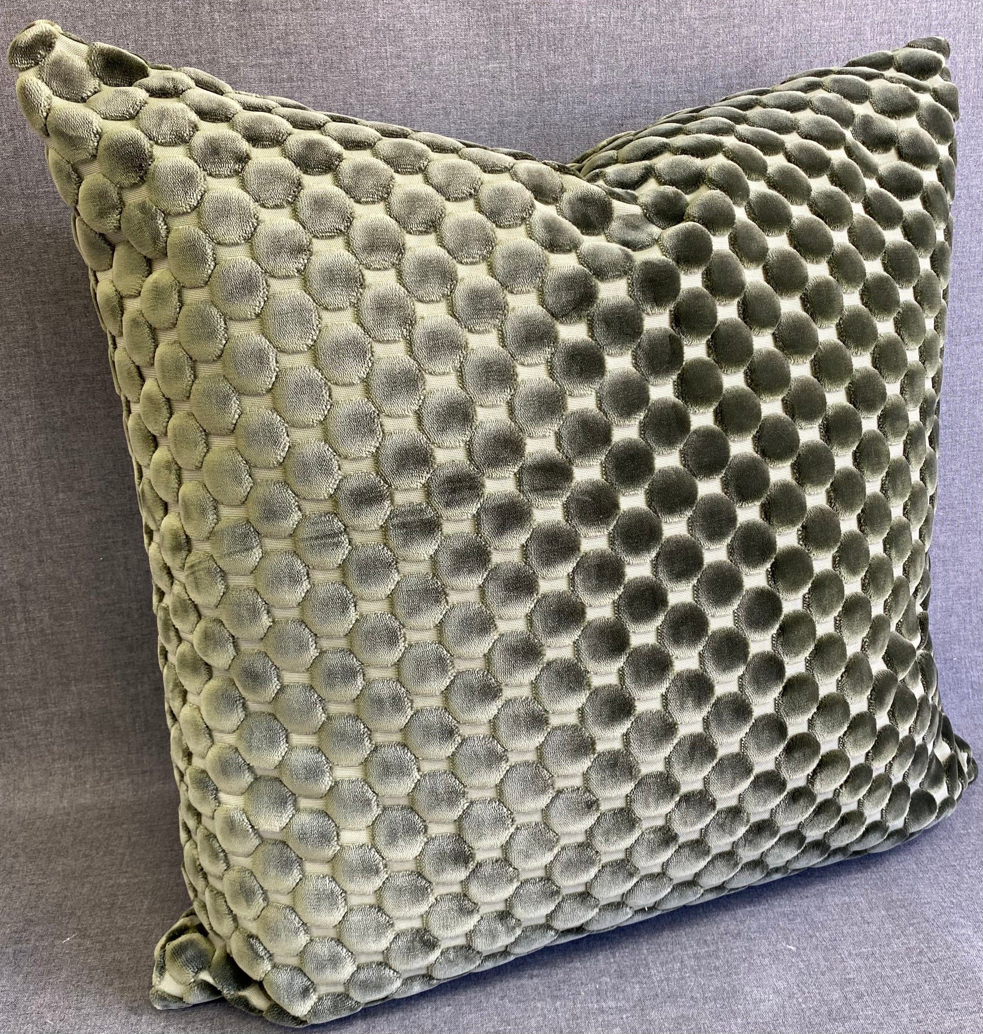 This pillow is 24" x 24" when measured flat with no filling. With filling it is 6" deep. It contains feather and down filling and is made in America.