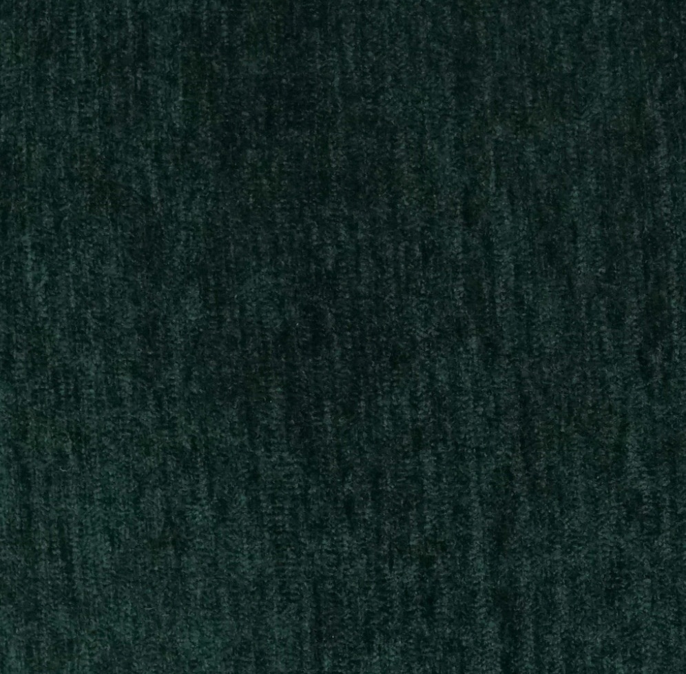 This pillow is 24" x 24" when measured flat with no filling. With filling it is 6" deep. It contains feather and down filling and is made in America. A hunter green chenille fabric.