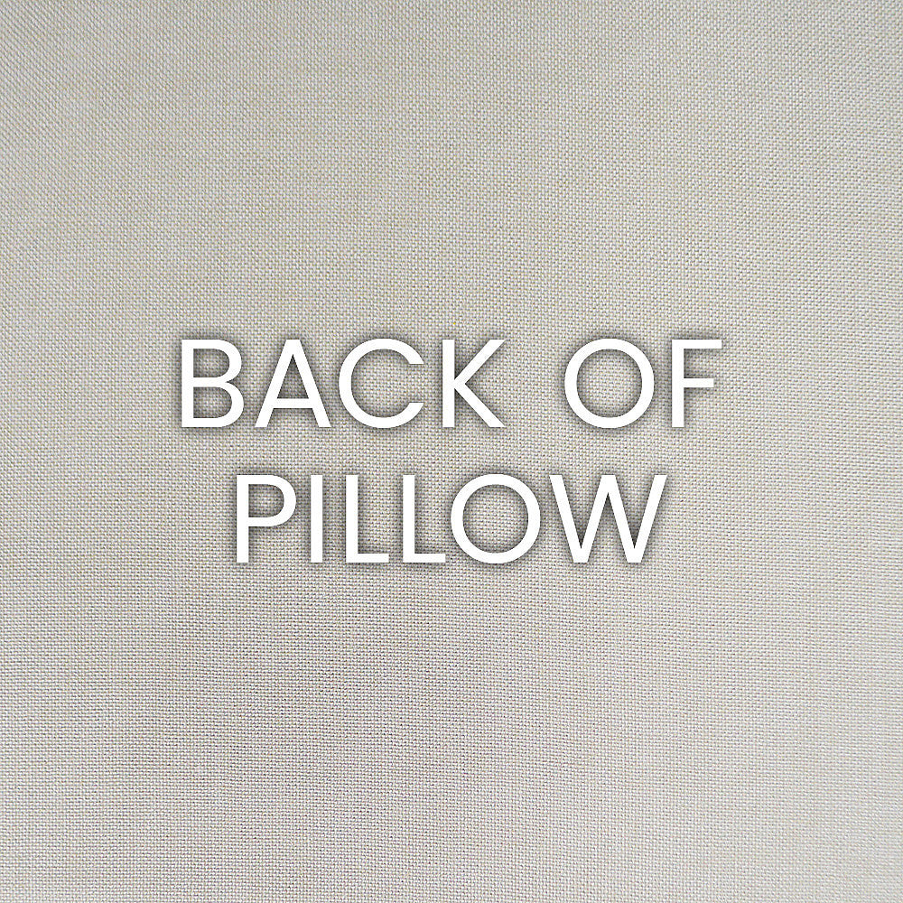 This pillow is 24" x 24" when measured flat with no filling. With filling it is 6" deep. It contains feather and down filling and is made in America. These are limited production runs until the fabric is gone. Shiny embroidered silver and white scribble design over a linen color background.
