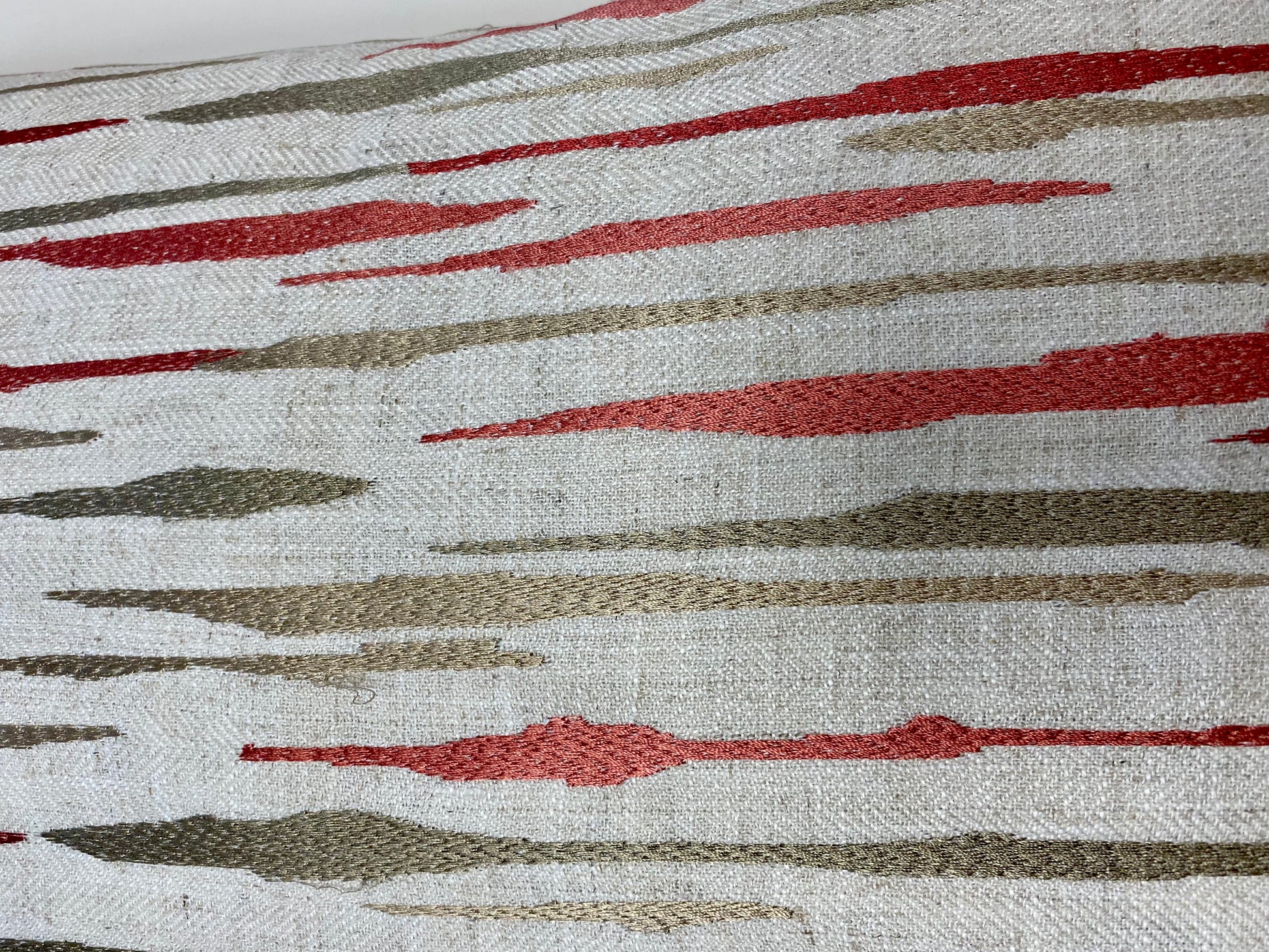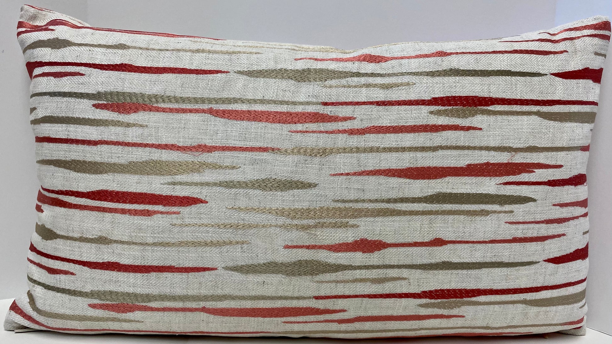 Luxury Lumbar Pillow; 24" x 14" - Marcus-Coral, Coral and taupe abstract pattern over an off white background