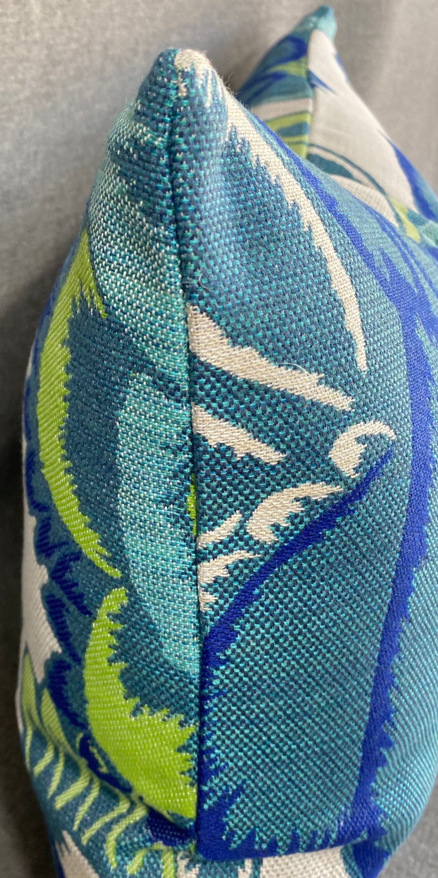 Limited edition. This pillow is 24" x 14" when measured flat with no filling. With filling it is 6" deep. It contains feather and down filling and is made in America.