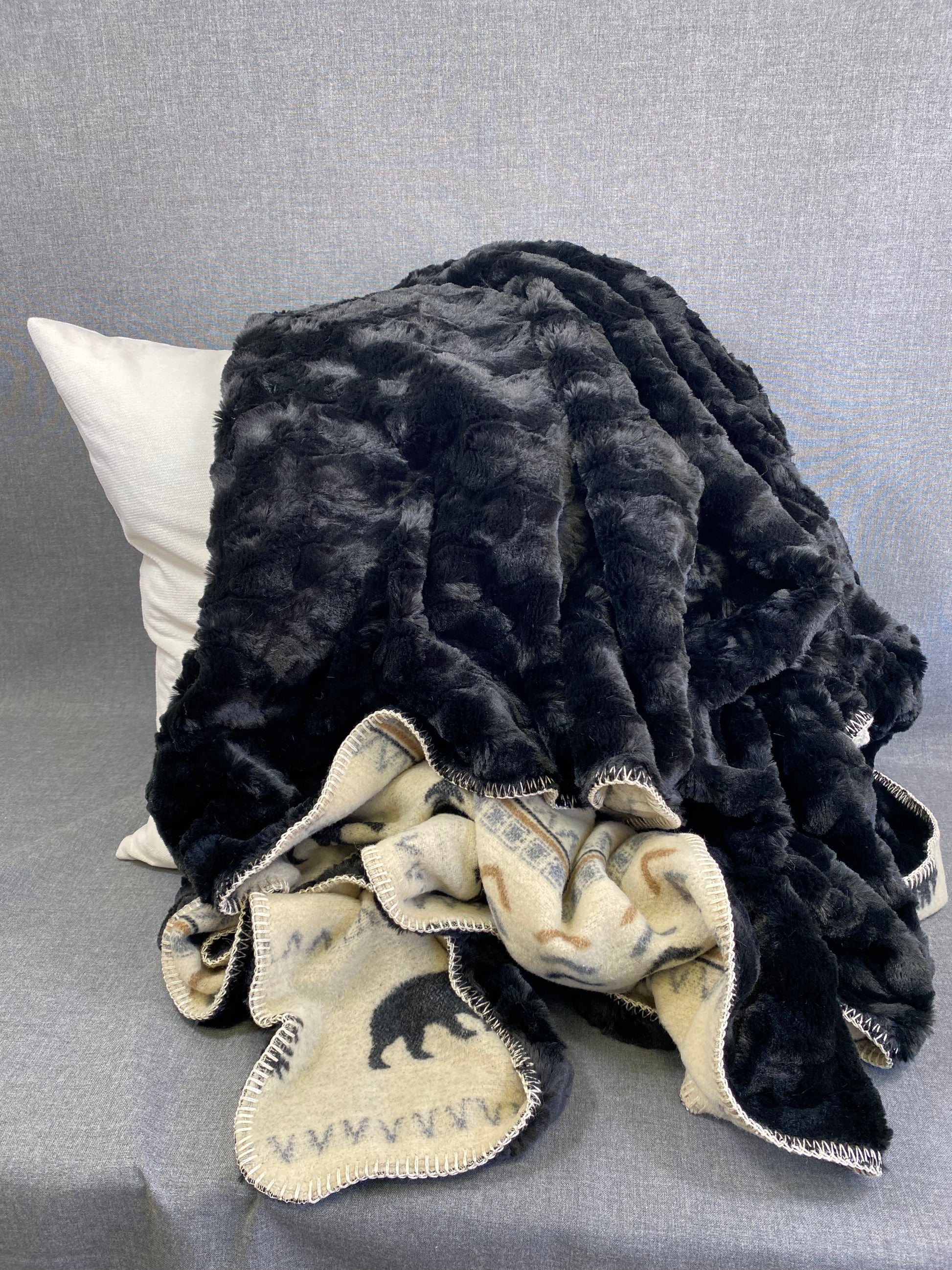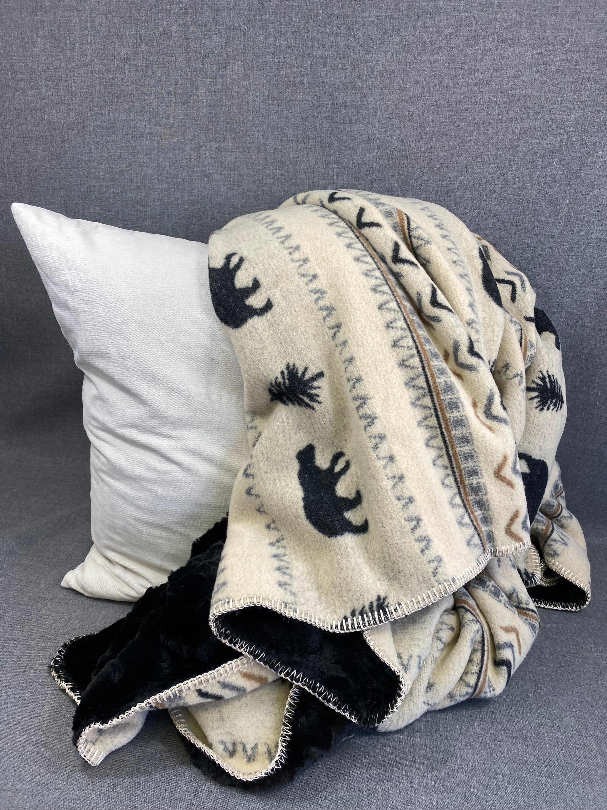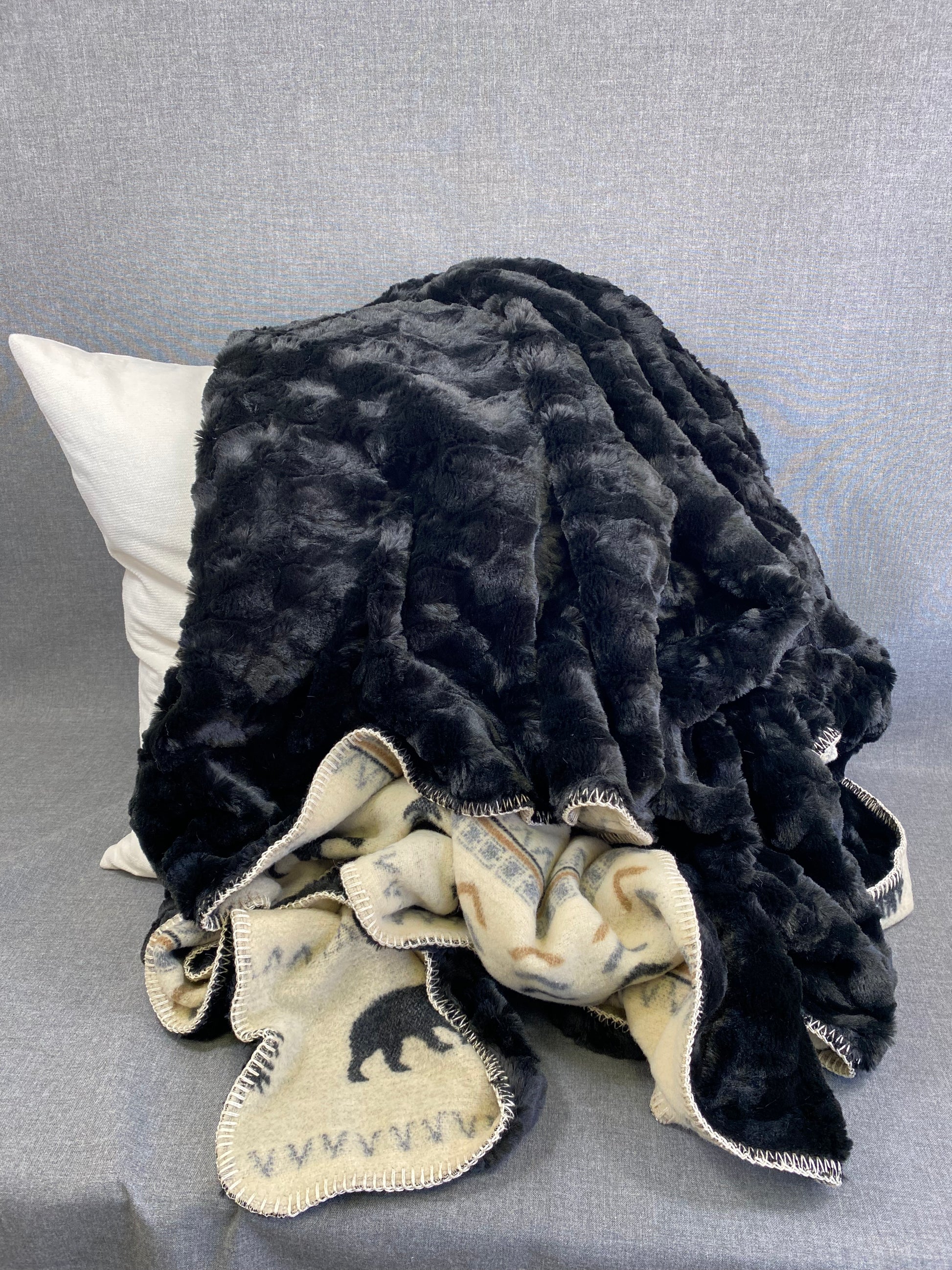 Boulder- Front, Obsidian- Back Blanket Stitch Natural. Soooo soft and lovely. Makes a perfect snuggle blanket for those hard to do days.