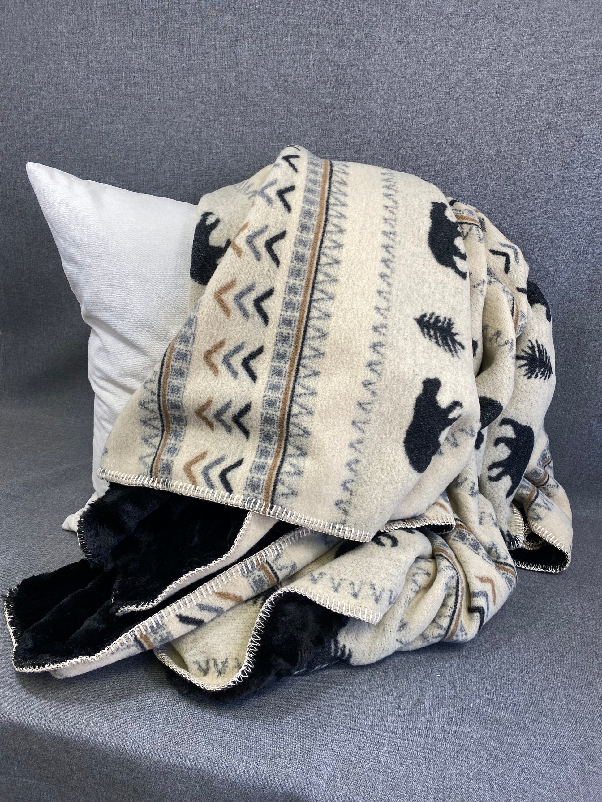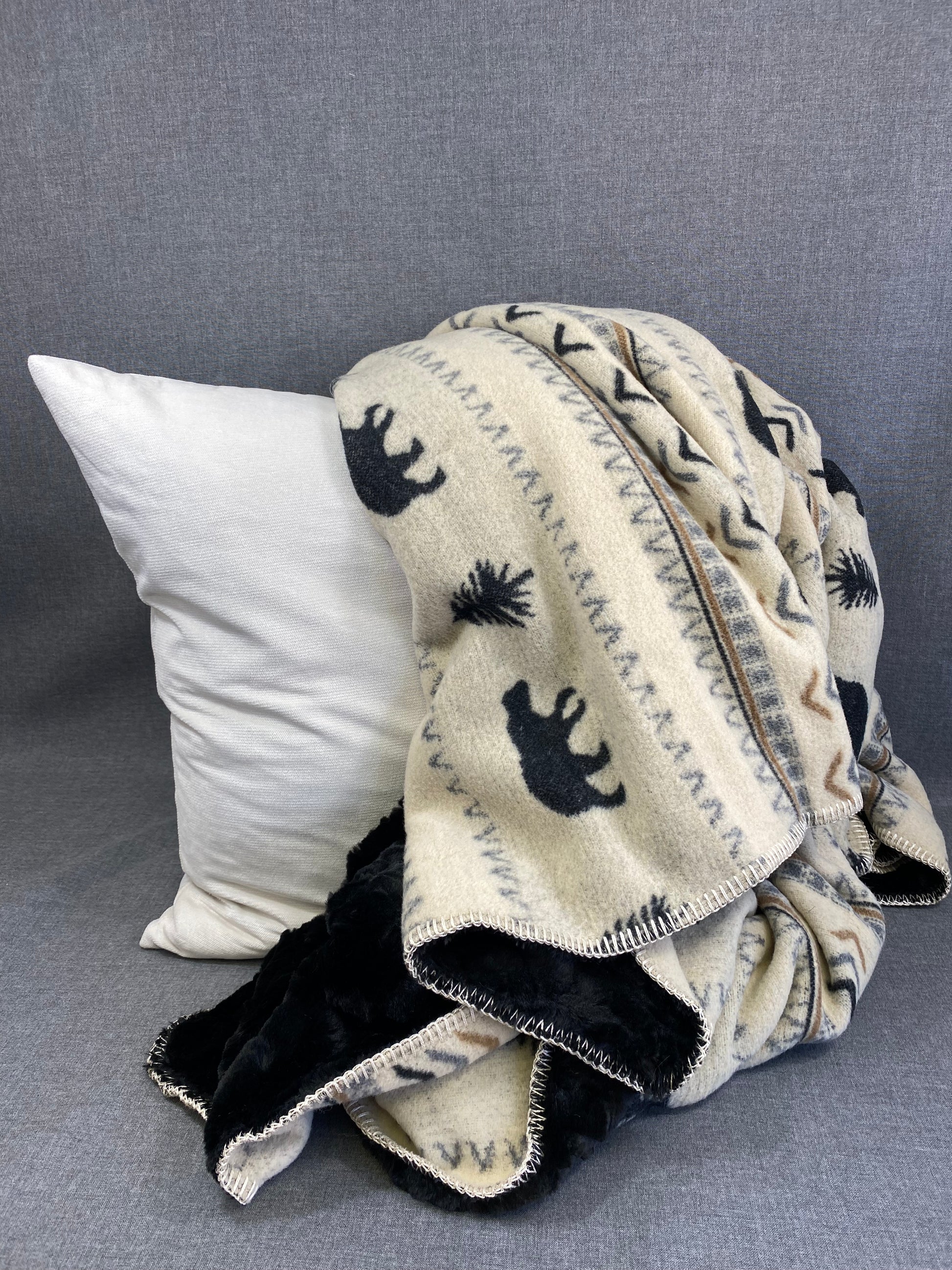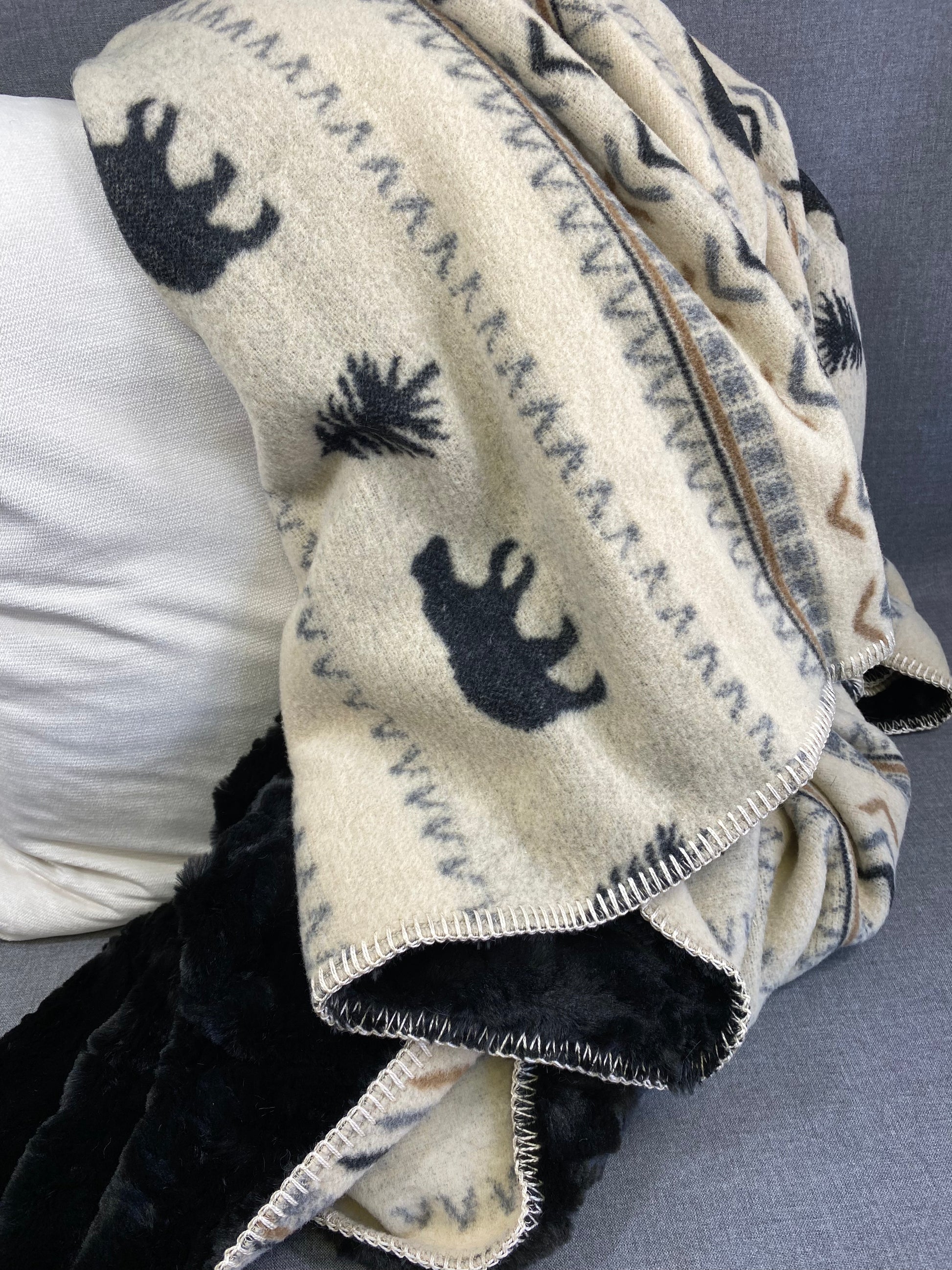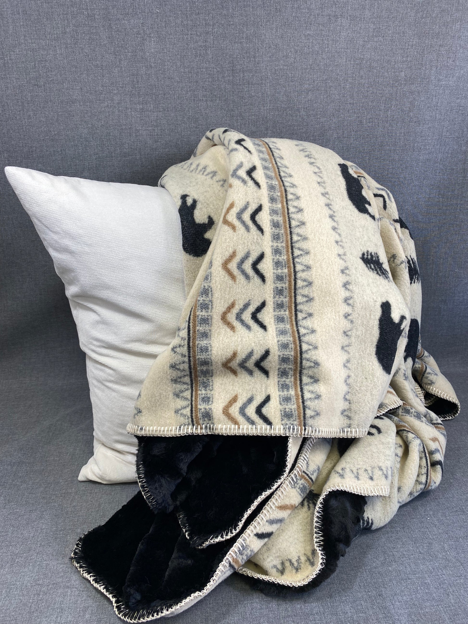 Boulder- Front, Obsidian- Back Blanket Stitch Natural. Soooo soft and lovely. Makes a perfect snuggle blanket for those hard to do days.