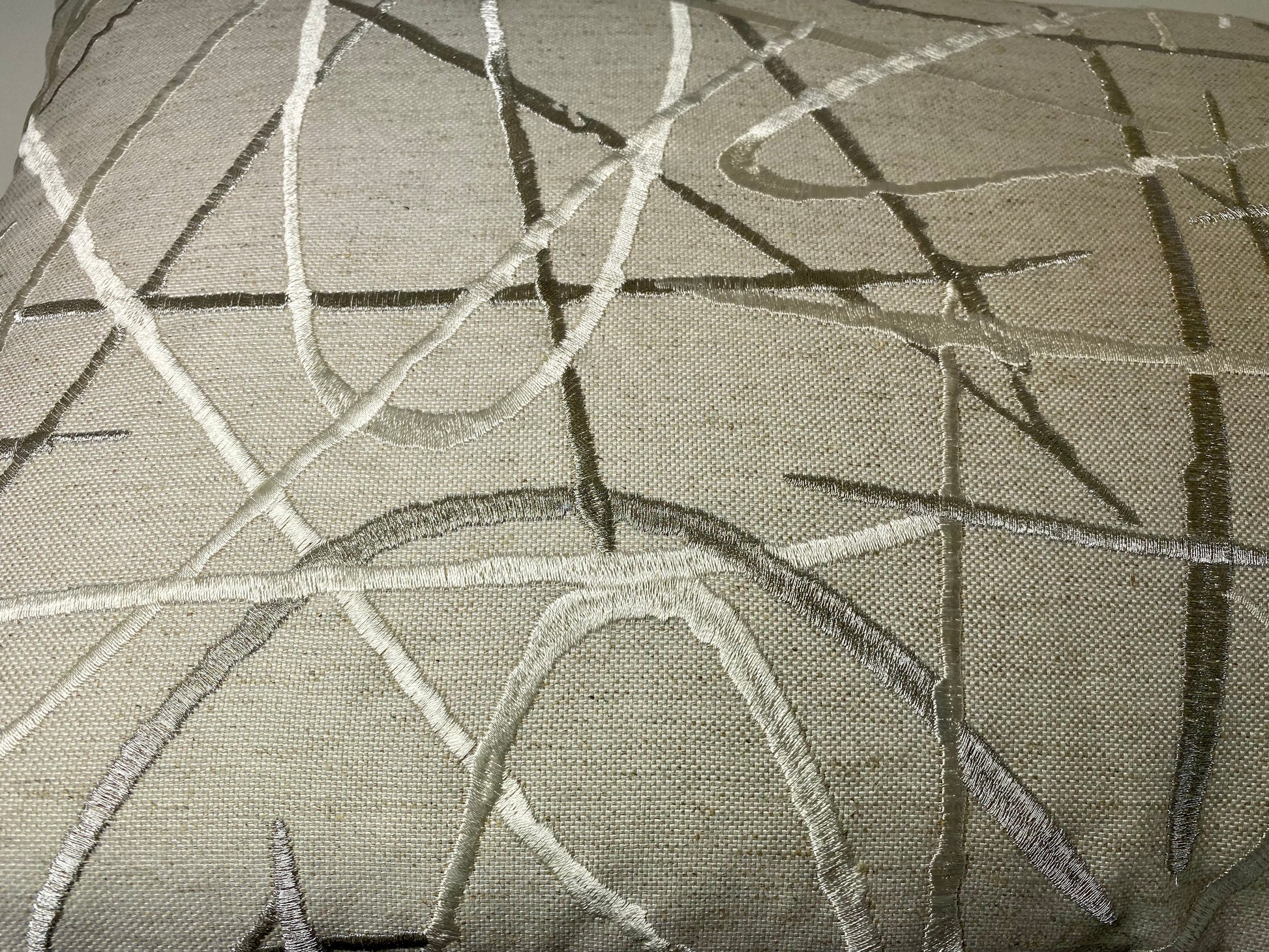 Luxury Lumbar Pillow - 24" x 14" - Scribble Silver; Embroidered pattern of silver & white over off-white background