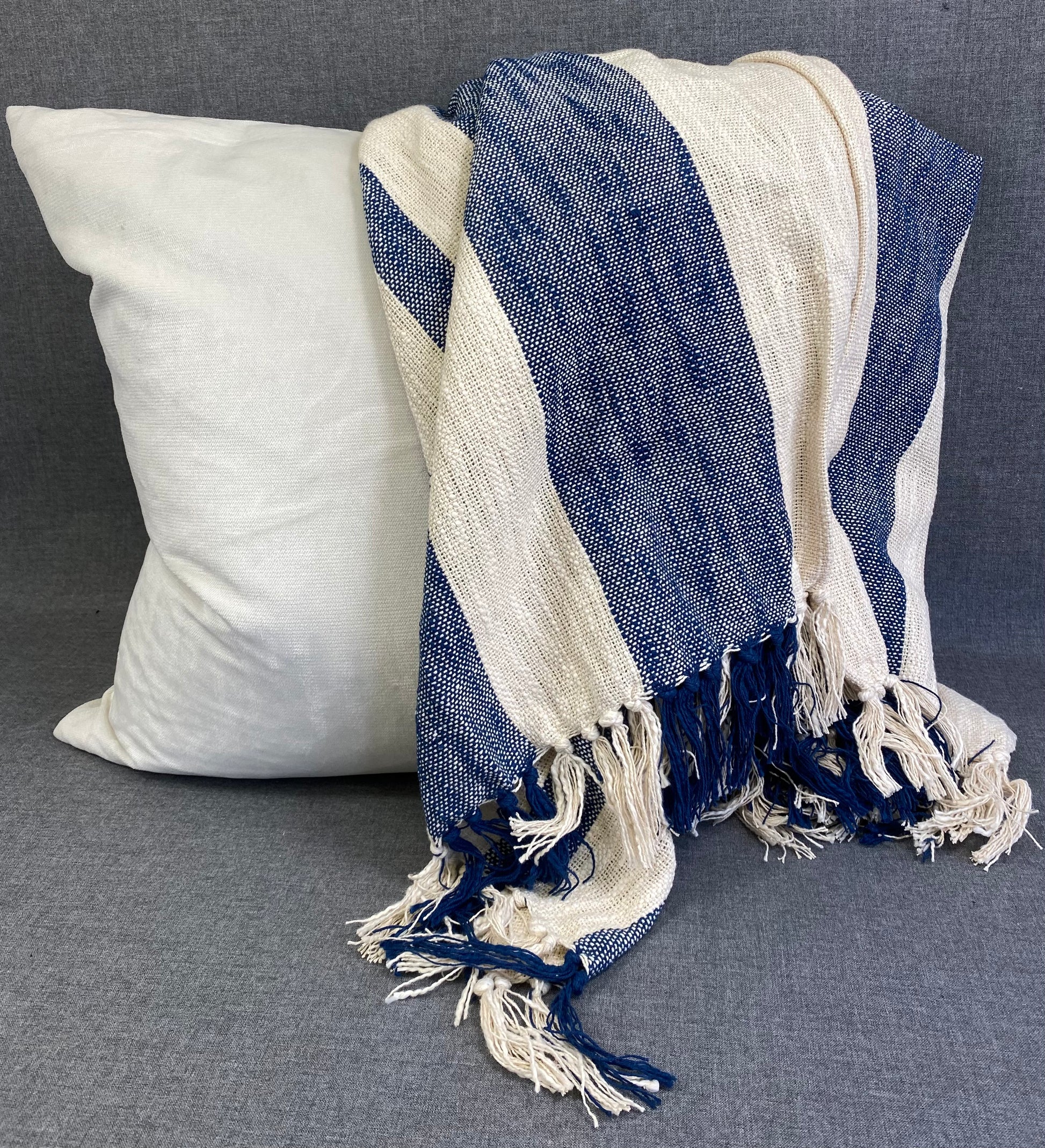 Striped Throw -Navy Blue- 50"X60"