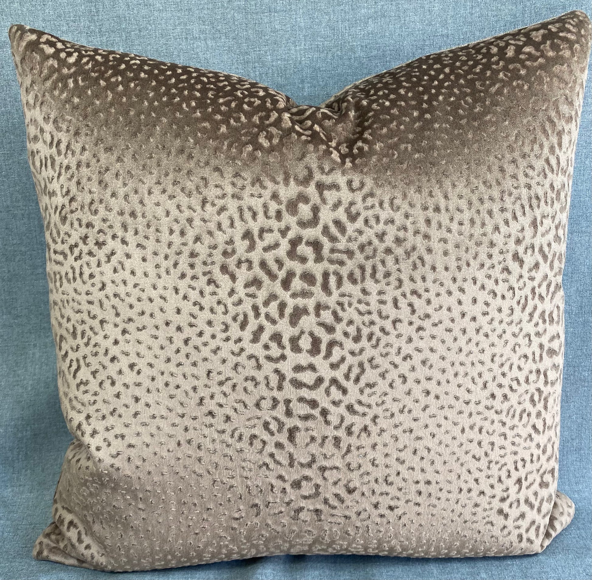 This pillow is 24" x 24" when measured flat with no filling. With filling it is 6" deep. It contains feather and down filling and is made in America.
